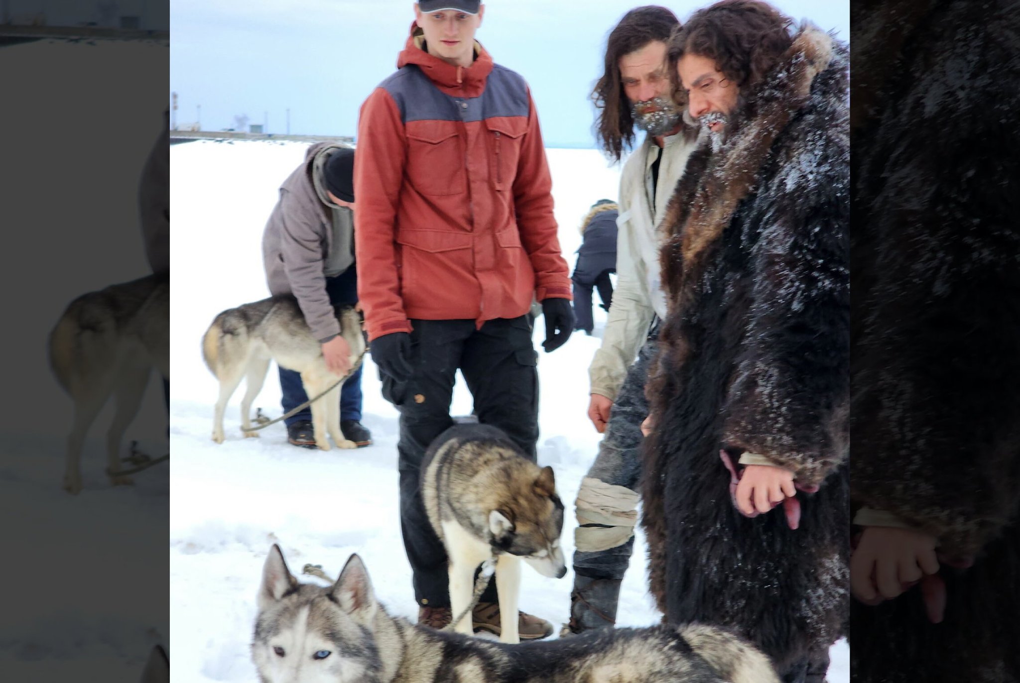 With over 30 years and thousands of miles on the back of a dogsled Hank served as Oscar Isaac’s stunt double for the technical sled work and movement sequences. Hank and our son Logan were also cast as sailors in one of the ship scenes so they could be with the dogs at the burning tent while the rest of the sailors went off to look for Victor.